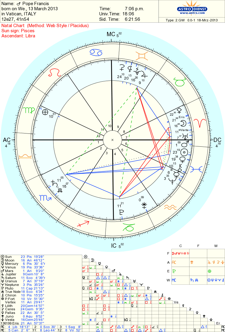 • Thank you, I am very happy that you enjoyed and understood my writing despite not being an astrologer. I am hoping to make it more accessible. Pope Francis is very interesting- since writing this article on March 19 I have noticed more confirmation that he will be taking things in a very different direction, and importantly a direction of service- such as visiting prisons and washing the feet of prisoners. I’m not sure yet how much of the Church scandal he will be able to or willing to address, but already he seems to have re-vitalized the Church more in line with the true message of Jesus.