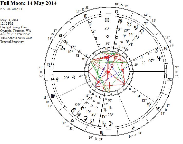 In addition to being the Wesak Full Moon, this time is also a Lunar Beltane, the Full Moon of the Full Season (Spring or Autumn, depending upon your hemisphere). This traditional pagan holiday connects with the past pagan holiday of Candlemas on January 31, when Venus stationed direct conjunct Pluto. The exact beginning of the current Venus and Pluto cycle began in November 2013, but the New Moon that occurred on Candlemas with them closely conjunct after a long Venus retrograde cycle is an important moment in time to return to in reflection now. What has transpired since then? At the time of this Full Moon we have finally reached the first quarter square aspect between Venus and Pluto, all the more electric and shocking to our system with a conjunction between Venus and Uranus. No matter what obstacles appear to be in our way at this time, know that this is not a time to back down in fear but instead to live in passion from our heart, in alignment with our authenticity. If we are on our path, and truly listening to others in our environment, no doubt we can also create some new alliances and friendships at this time to help propel us further into our soul purpose.
