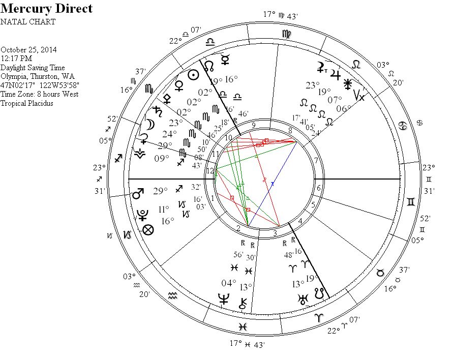 Mercury will leave the shadow zone on November 10, 2014 at a time that Venus will be conjunct Saturn in Scorpio and Mars will be conjunct Pluto in Capricorn.  As Mercury moves forward through Libra, focus on re-integrating all of the messages gained regarding our desires, relationships, and sense of self within relationships.  The astrology of this time suggest there is something profound to build and cultivate from the rumination of our inner mind.