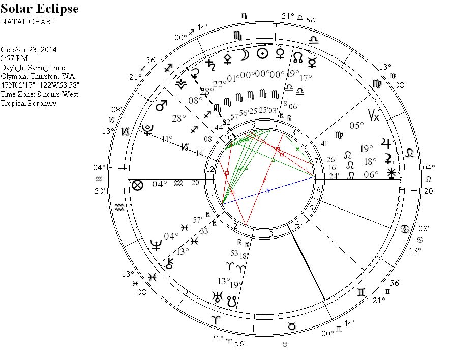 Eclipses are known to throw everything into disarray, and are not known to be times best for laying carefully designed plans.  Yet this eclipse is so full of break-through aspects and force that it seems an air of liberation will be part of the chaotic atmosphere.  It will be a time of sensing the power within a polarity of feelings, integrating the subconscious with the conscious, and owning our authority to heal the previous fracturing of our soul like Persephone.  This will be a time to believe in our capacity to create a life aligned with our deepest soulful passions more so than the expectations of the consensus reality dominating our environment.