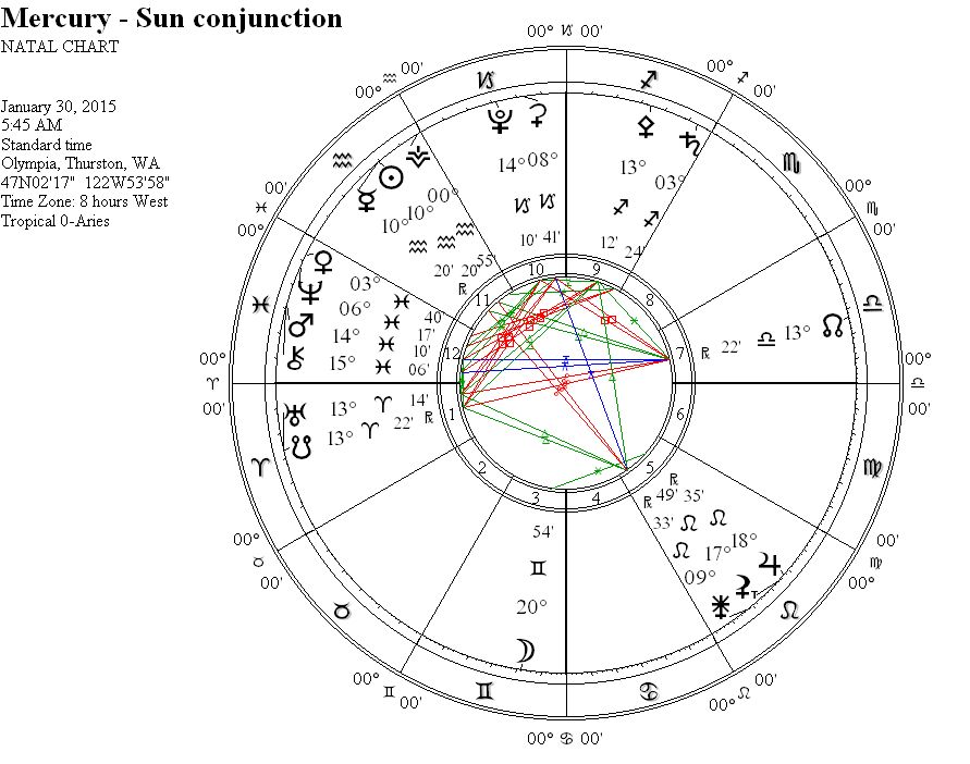 Mercury stations direct near the same degree of the New Moon of January 20, 2015 bridging the intentions we set at the beginning of the Mercury retrograde with it’s completion.  Mercury will station in conjunction with Vesta in Aquarius, bringing added focus, centeredness, and commitment to this stationing direct.  Vesta combined with Mercury in Aquarius could find us feeling somewhat alienated from others as we process and integrate the inner shifting that came during the retrograde phase of Mercury, and we may need to take some time for solace in solitude.  Ceres closely combined with Pluto in Capricorn in square to the lunar nodes and Uranus, with Venus conjunct Chiron in a balsamic conjunction with Mars may give us further cause for taking a break from busyness to re-center and re-intergrate.  Some of us may not be so lucky to get away from others and our daily work while Mercury is stationing, and so the focused energy of Vesta combined with Mercury will help us fulfill professional responsibilities and remain dedicated toward completing the responsibilities associated with the goals we are working toward.