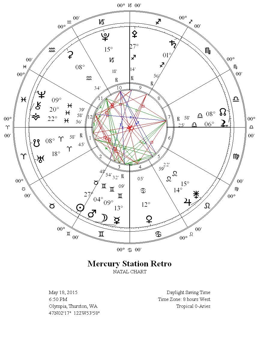 On May 18, a day after a New Moon in Taurus, we enter the second of our thrice yearly Mercury retrograde spells, this one occurring in Gemini.  As the Mercury retrograde periods in 2015 all occur in Air signs, this chapter is significant for being in the mutable sign of Gemini where Mercury makes its home and lifts our minds with winds of inspired language.  Mercury retrogrades are not a time to fear, though being aware that Mercury is setting a different tempo can help us orient to how to make productive use of its potential.  When Mercury appears to move backward from our perspective during its retrograde, it is closer in orbit to us and creates the effect of moving slower.  In correspondence, we gain access to a more magical perception that can decode messages from symbolic patterns in our daily experience.  Following Mercury’s retrograde station, Mercury disappears from our view of it hovering over our horizon and moves into the underworld and the role of guiding us into pivotal inner insights of soul.  In Gemini, Mercury plays up his mischievous trickster side that unveils the folly of those taking themselves too seriously, as well as amplifies our capacity to synthesize a multiplicity of perspectives, philosophies, and observations into shared meaning and unified vision.