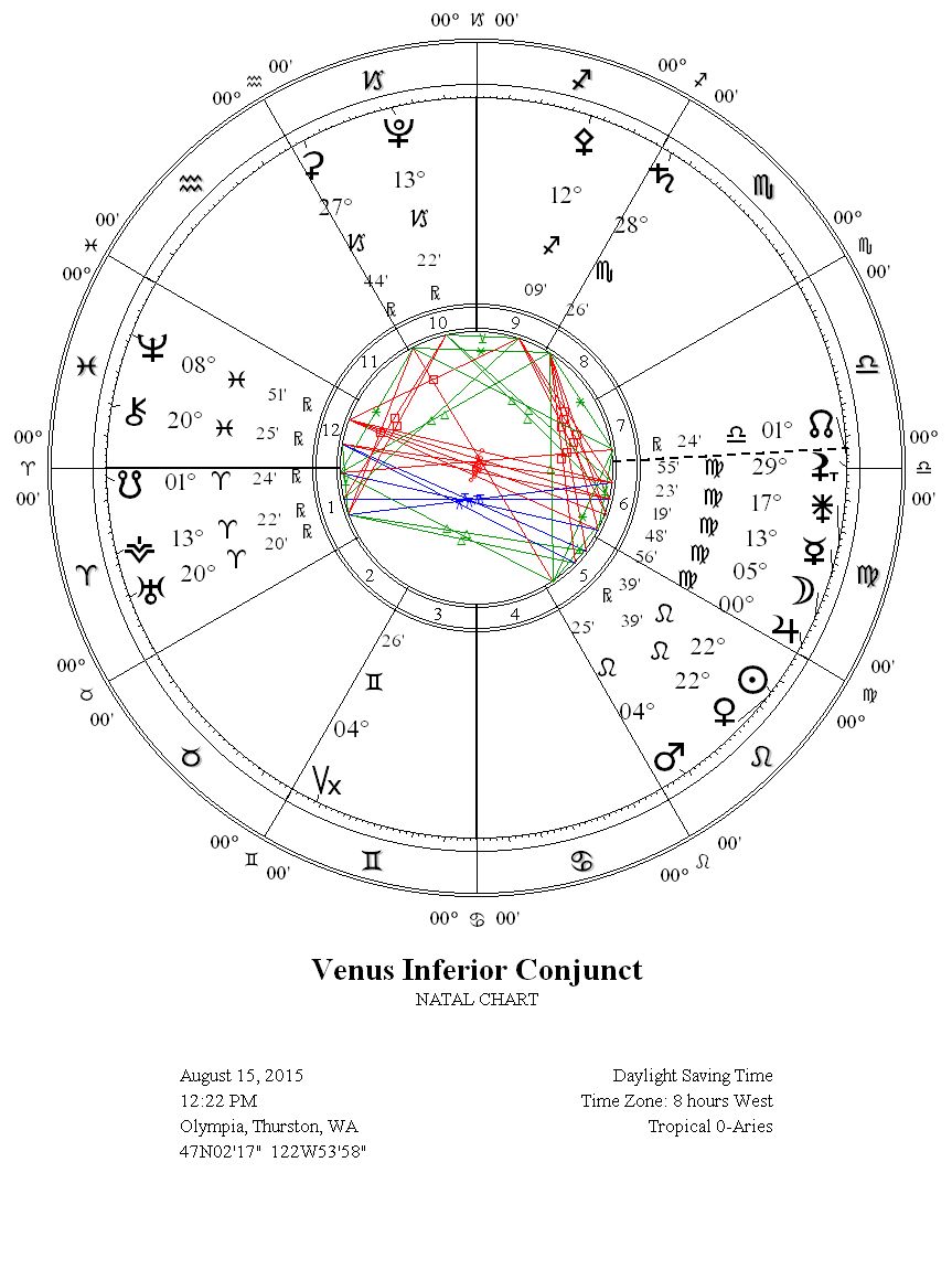 - Inferior conjunction of Venus with the Sun, or “New Venus,” will be at 22°39′ Leo on August 15, 2015.