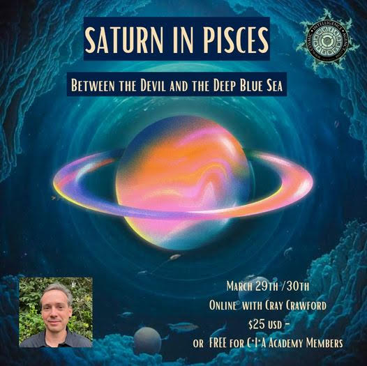 I will be offering my webinar “Saturn in Pisces: Between the Devil and the Deep Blue Sea” for the Cosmic Intelligence Agency this upcoming Wednesday 29 March 2023 at 4 pm PDT / 7 pm EDT which is Thursday 30 March 2023 at 10 am AEDT.