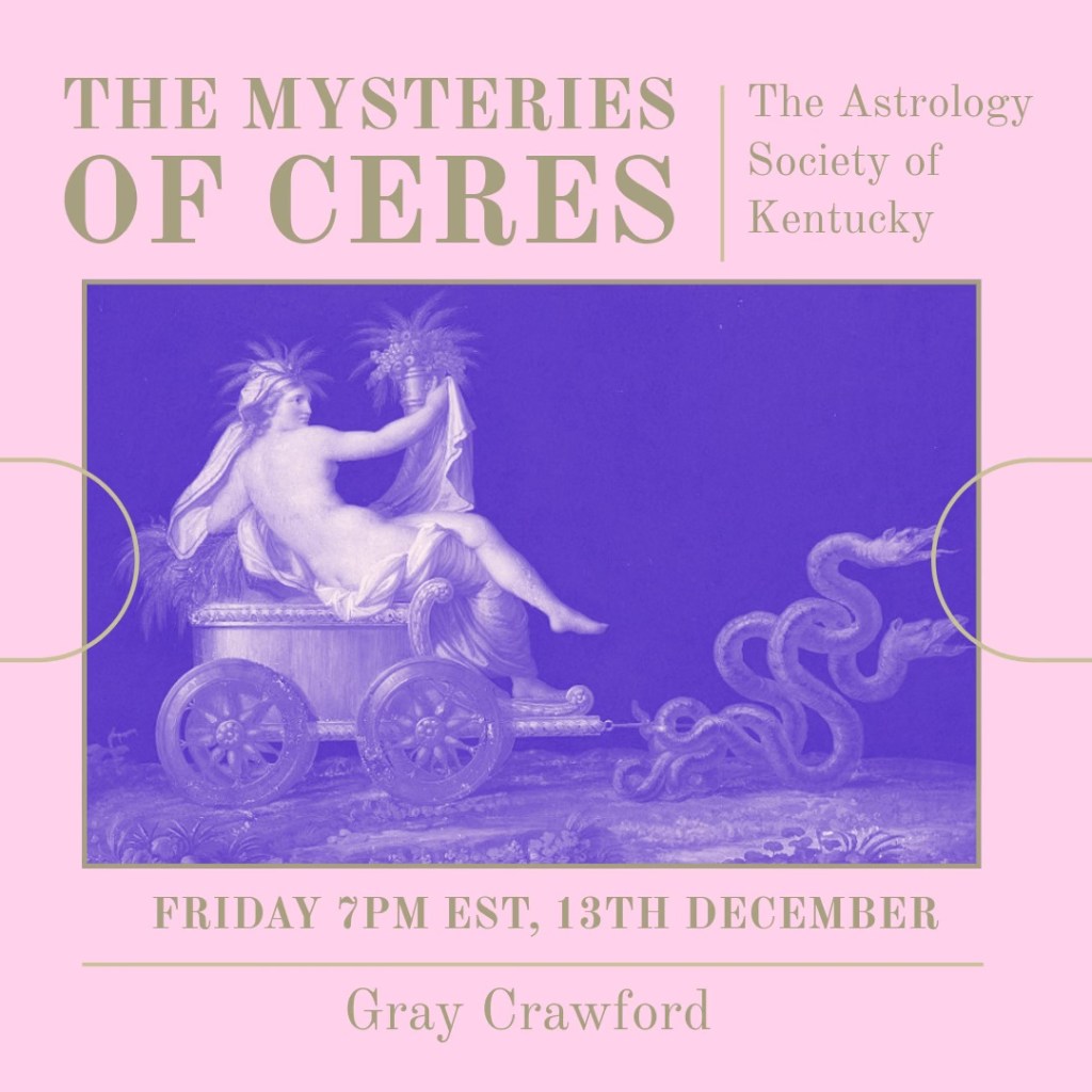 On Friday 13 December at 7 pm EST/4 pm PST, I will be giving a talk for the Astrology Society of Kentucky about the dwarf planet Ceres, queen of the asteroid belt.